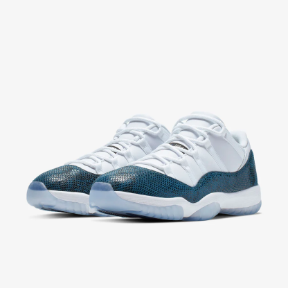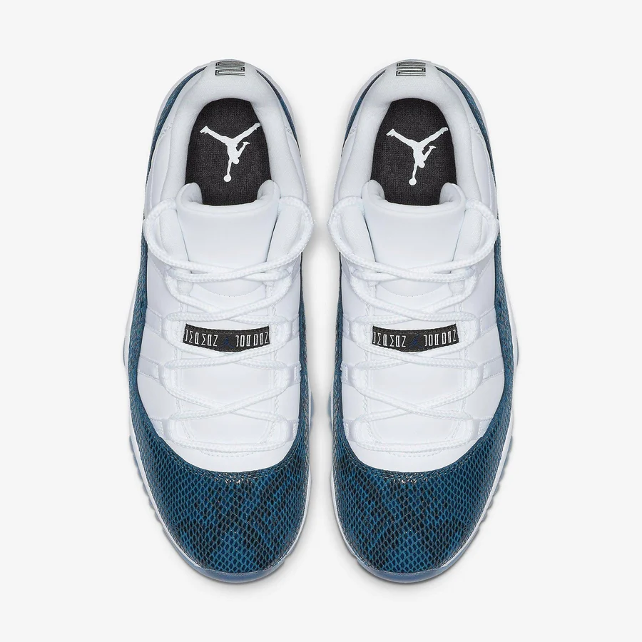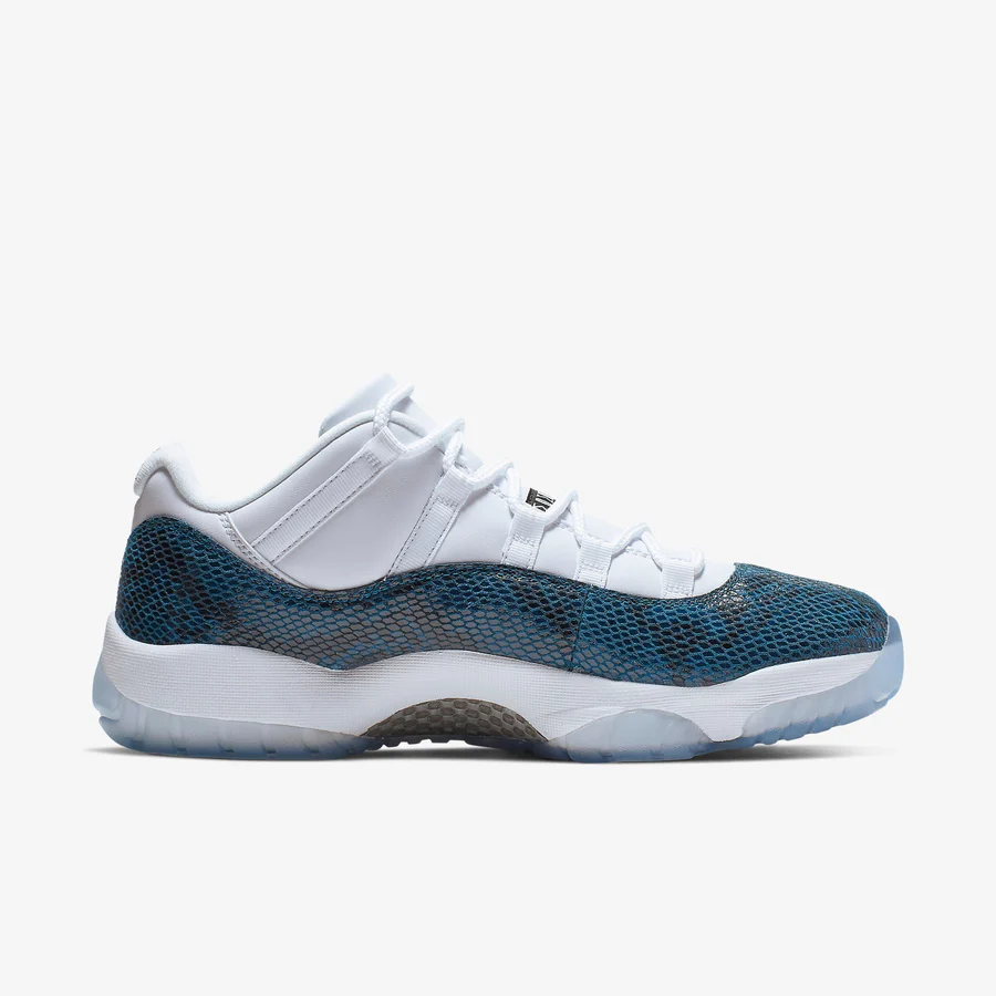 The Air Jordans 11 Retro Low 'Navy Snakeskin' returns for the first time since 2000. A true retro to the original. the 2019 version features leather panels on the upper instead of mesh and a translucent outsole. while the mudguard still features a navy snakeskin print.