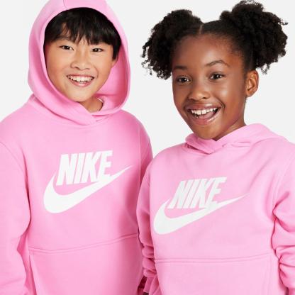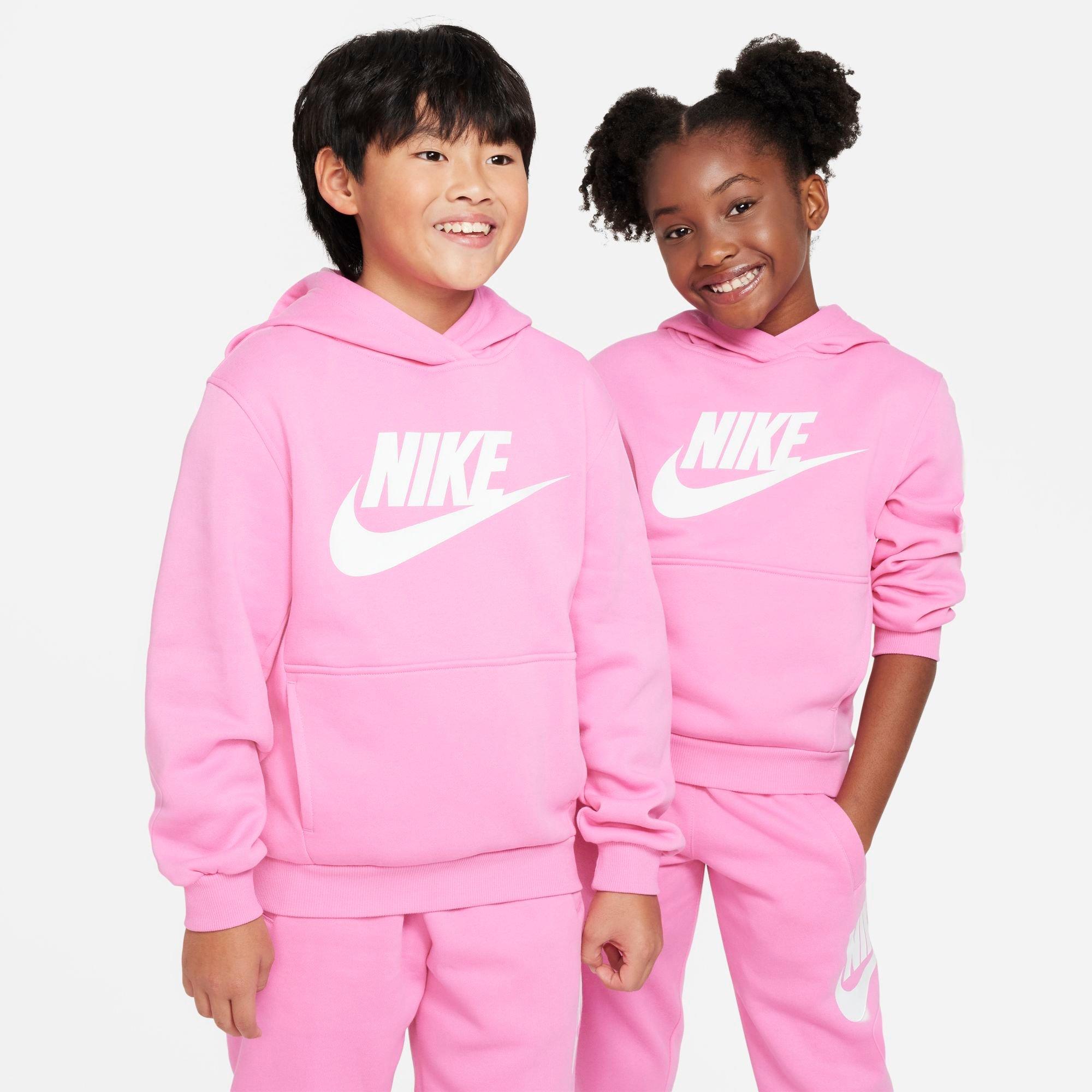 Coziness comes first when you're wearing this Big Kids' Nike Sportswear Club Fleece Pullover Hoodie. Its fleece fabric has a velvety smooth exterior and super soft interior for a trusty extra layer that'll keep you comfy through the chilliest days of the season in signature Swoosh style!