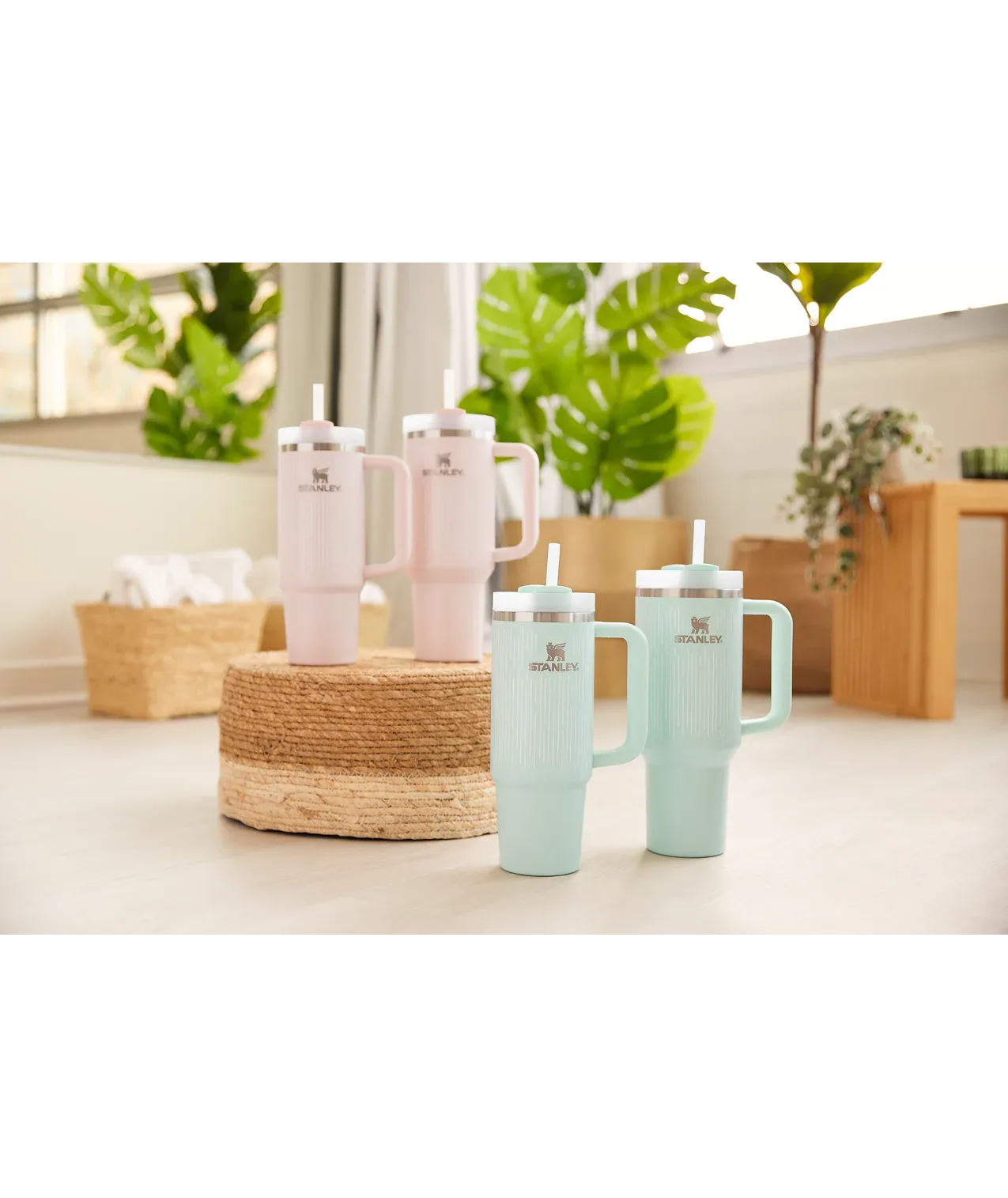 A stantheley1913 exclusive, start fresh in the new year. In pastels that pop, the Quencher H2.0 FlowState Tumbler gives you all-day hydration with fewer refills. From office desk to workout studio, or nestled next to your yoga mat, double-wall vacuum insulation keeps water ice cold for 48 hours, and the slim base fits right in your cupholder. The advanced FlowState lid rotates through three positions: a straw opening to hold the reusable straw in place, a drink opening, and a full-cover top that resists splashes. Make hydration your feel good essential.