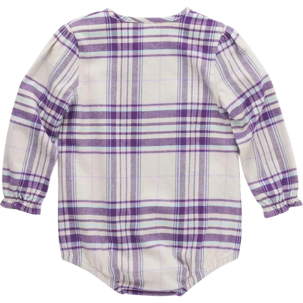 No nonsense. Just plaid flannel. That's the whole story of this baby girls' bodysuit. Snaps make it easy to take on and off. Its tagless design means more comfort. Dirty? Don't worry. It's washable.