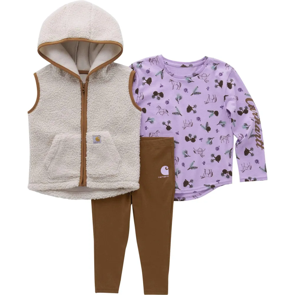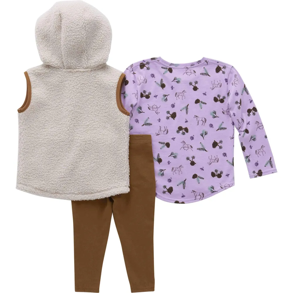 Girls' Long Sleeve Printed T-Shirt, Sherpa Vest & Legging 3pc Set (Infant)