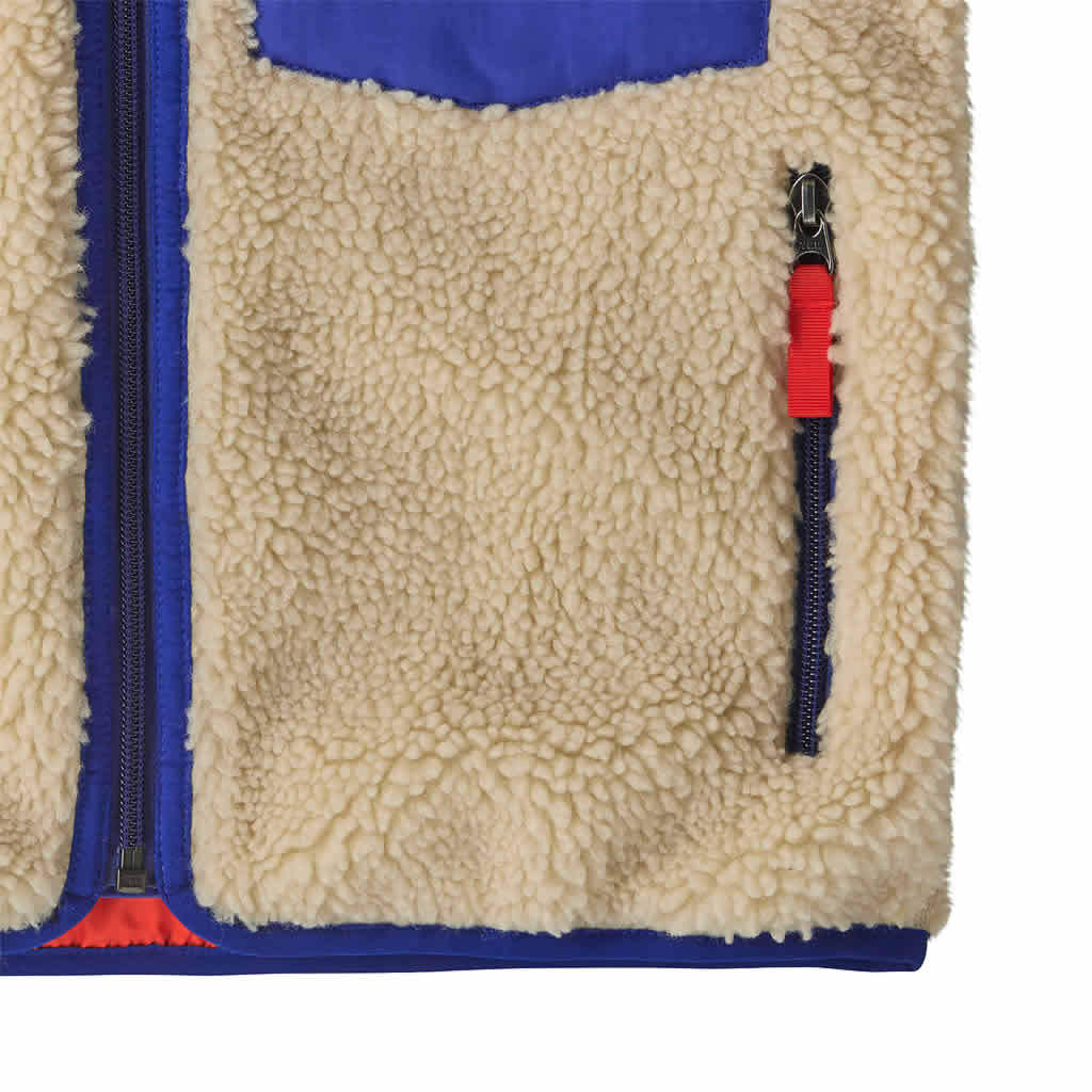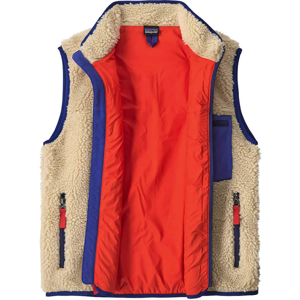 The Kids' Retro-X® Vest is windproof, warm and built of soft 100% recycled polyester 1/2"-pile fleece that's lined with 100% recycled polyester taffeta. Patagonia has cleaned up this heritage style, for both adults and kids, by using 100% Repreve® recycled polyester certified by OceanCycle and sourced from coastal communities at risk of plastic pollution. Made in a Fair Trade Certified™ factory.