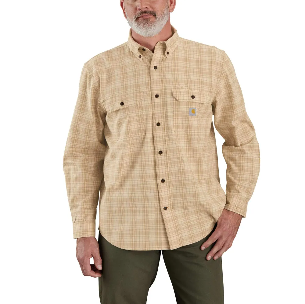 Chopping wood or working in the shop, this long-sleeve men's chambray shirt offers work-day comfort in 100% cotton. It has a midweight feel and a classic plaid look. The loose fit makes for easy layering and ease of movement.