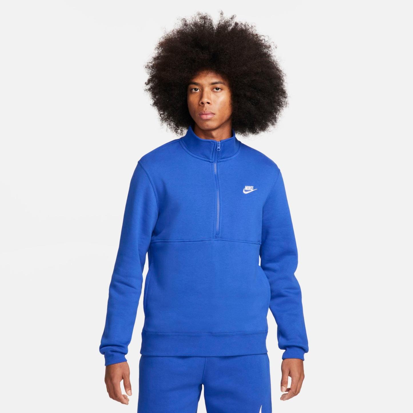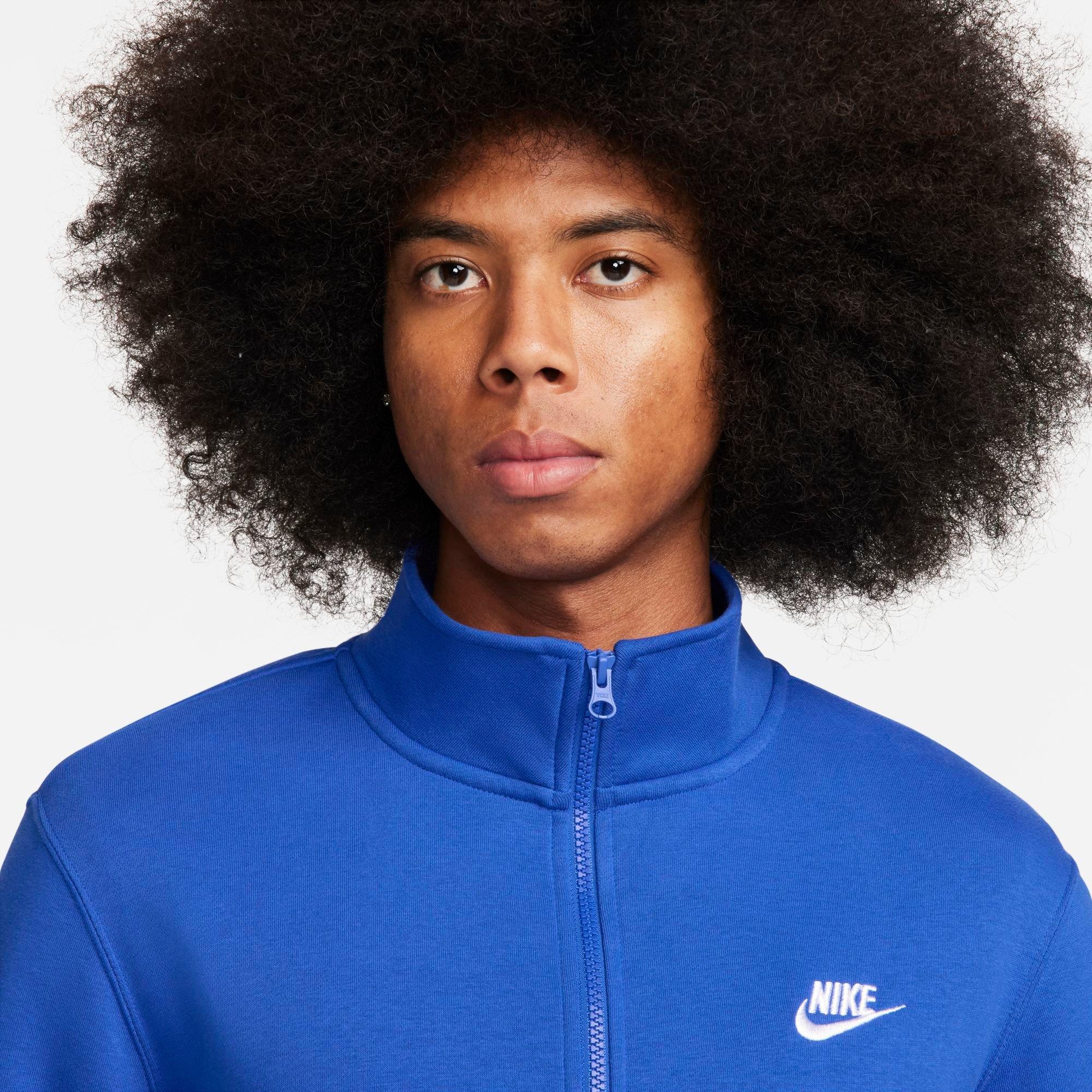 Drape yourself in the Men's Nike Sportswear Club Half-Zip Pullover Jacket when big winds and cool temperatures try to force you inside. Smooth, fleecy fabric feels like you’re wearing your favorite blanket while simultaneously upping your style game.