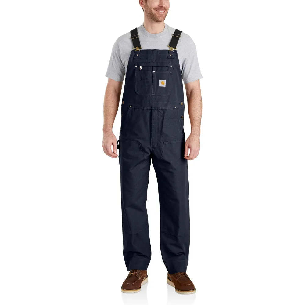 An update to our most popular unlined bib, the R01, these heavyweight men's bib overalls were designed using feedback from our Crew. Every detail, from the front-to-back kick panel on the cuffs to the extra stretch around the waist, was informed by the hardworking people who wear our gear day-in and day-out. The heavyweight cotton duck material makes them dependable and durable. Elastic suspenders, a double layer at the knees, and ample pockets provide even more durability and functionality. Compatible with the Knee Pad.