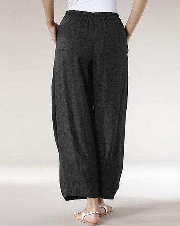 Casual Solid Patchwork Wide Leg Linen Pants