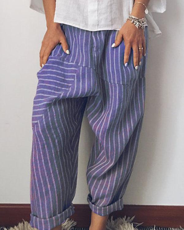 Fashion Stripe Wide Leg Linen Pants