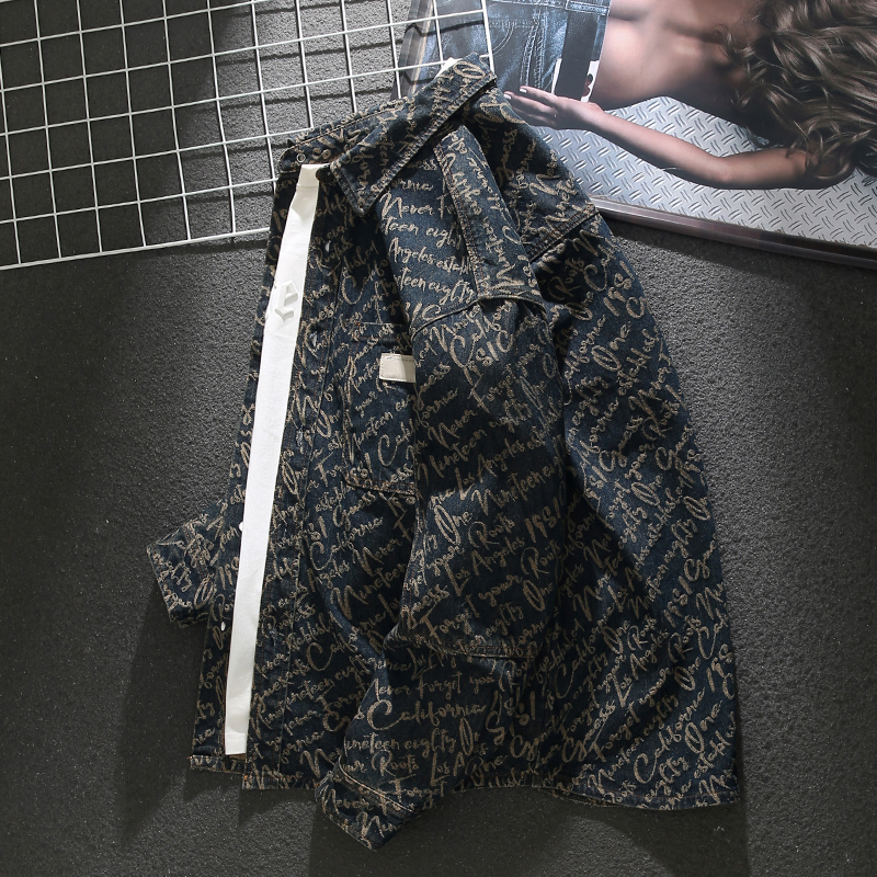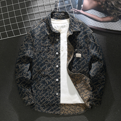 Letter jacquard denim retro shirt jacket