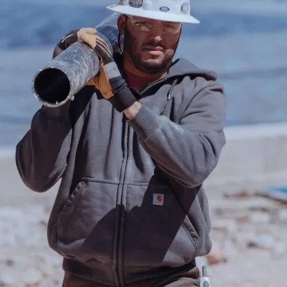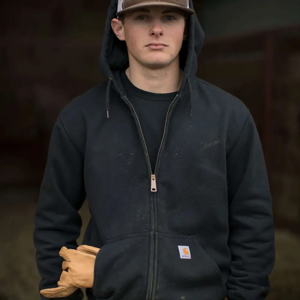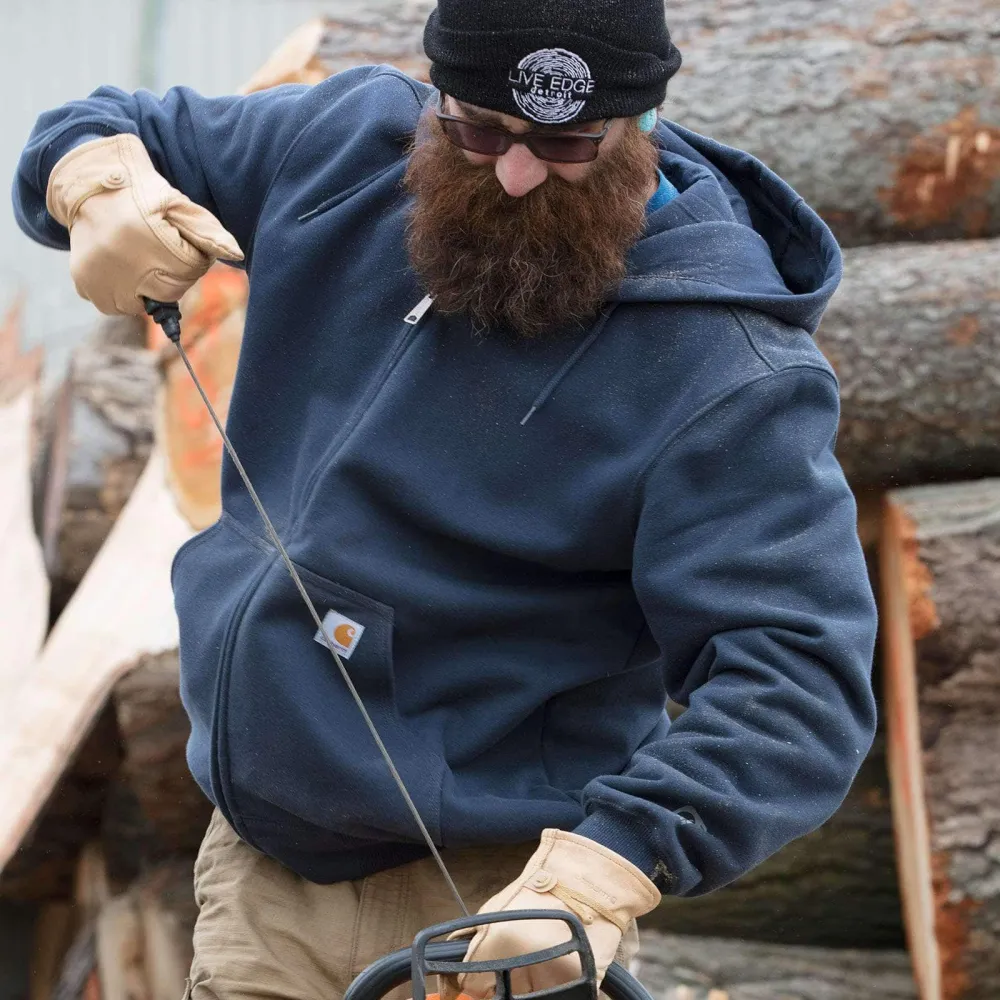 Men's heavyweight, water-repellent sweatshirt for outdoor work.