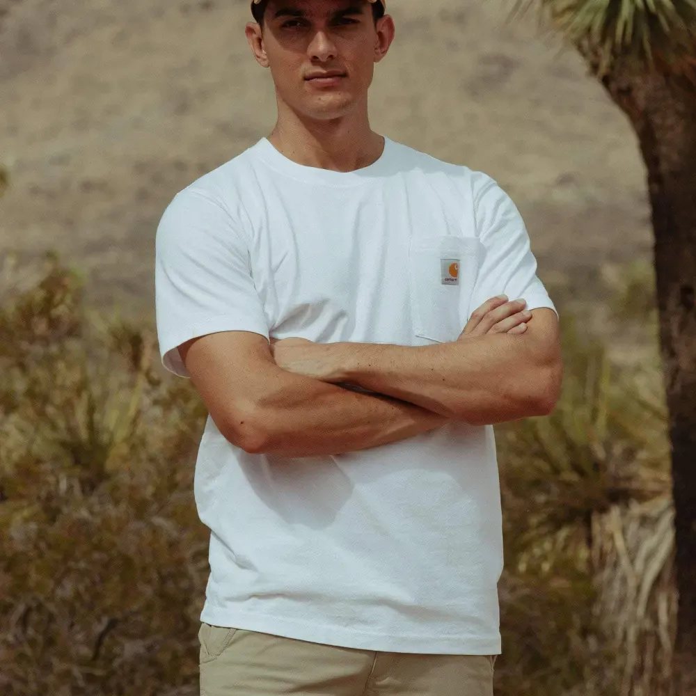 Our pocket t-shirt debuted in 1992, and its rugged cotton design and clean looks made it a fast favorite among the hard-working folks who pulled it on. This men's t-shirt is made with heavyweight cotton built to handle tough days on the job. This is made in a relaxed fit that fits closer to the body and a soft feel that only gets better with time.