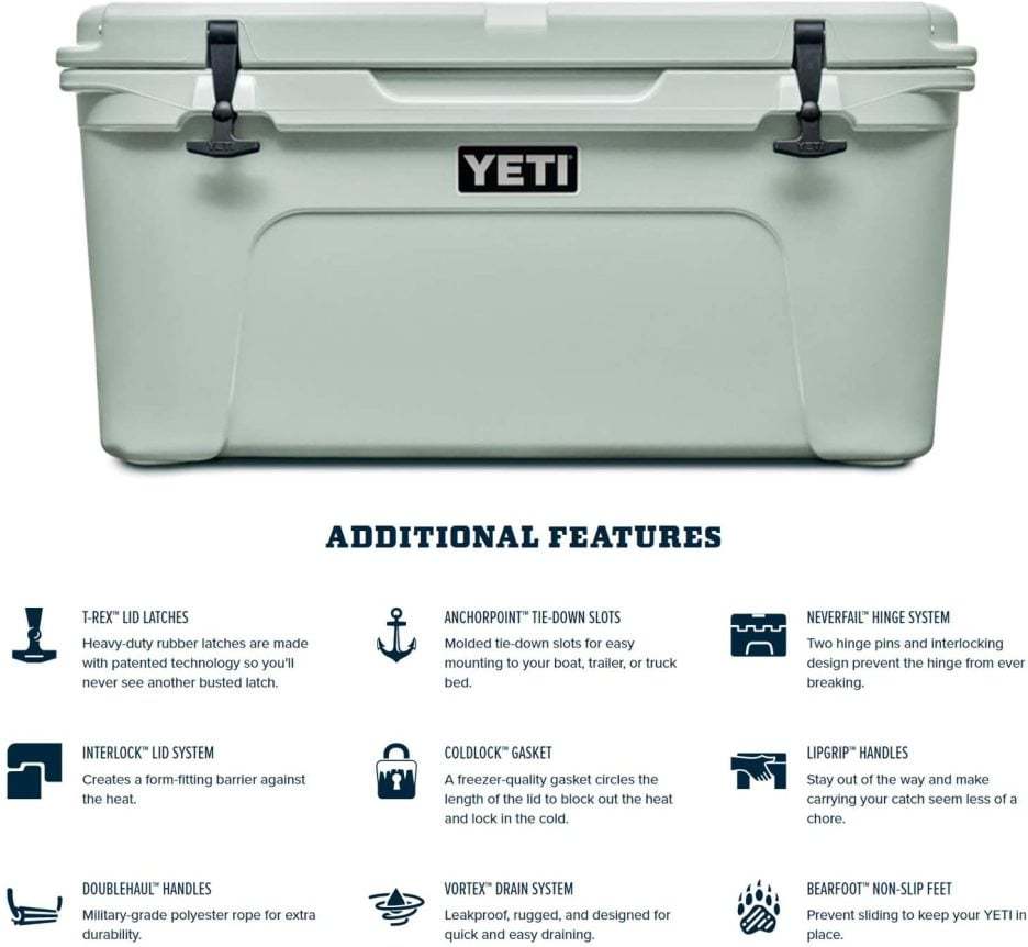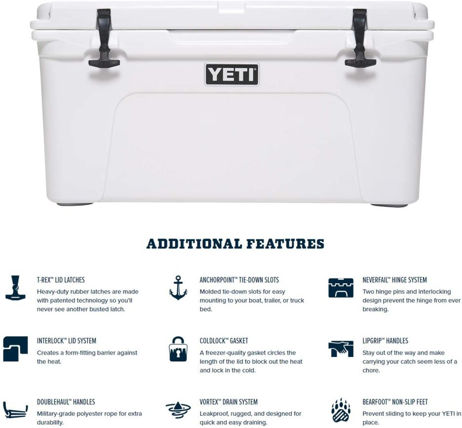 - The YETI Tundra 65 is just as adept at keeping your catches cold in the field as it is storing the drinks and food for your backyard barbecue, this ice chest is plenty roomy, holding a limit of redfish or your prized brisket